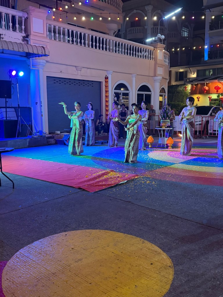 Tok min vanlige kveldstur rundt kvartalet og tok en Soda på en plass jeg vanligvis ikke sitter. D var tradisjonell Thai dansing og ganske trivelig.